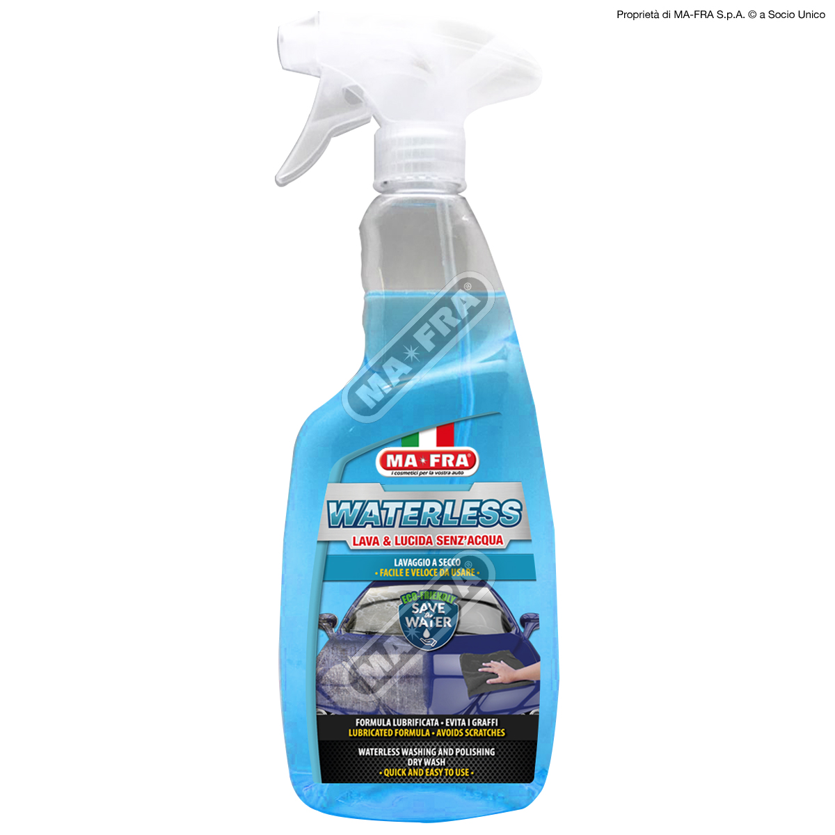 Waterless 750 ml – Nettoie et fait briller sans utilisation d’eau, le produit innovant grâce auquel, de manière simple et rapide, la voiture sera propre, brillante et protégée, partout et en toute sécurité, sans utiliser une seule goutte d’eau.